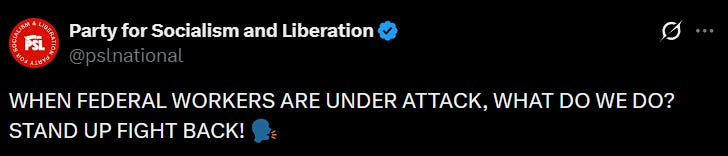 Even as disgusting, and a more recent development, we have leftists openly coming to the defense of fired federal “workers”— the pencil pushing bureaucrats who have managed the very system that has made the majority of people in this country's lives worse.