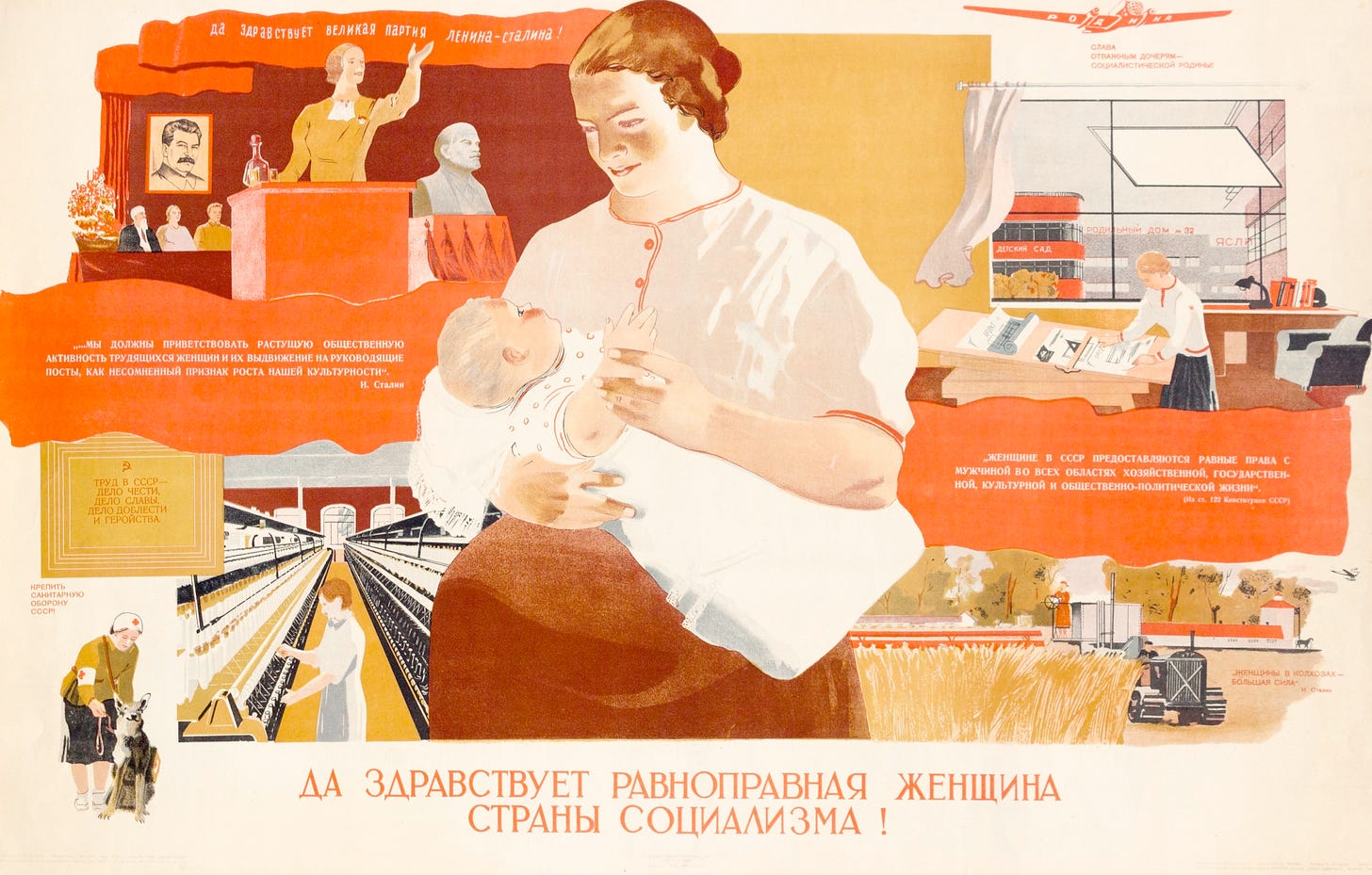 “Comrade Stalin took the floor. He spoke quietly, but so clearly that everyone could hear him. He spoke simply and with remarkable wit. He recalled the time of matriarchy, explained what matriarchy was, how it came about that women were more thrifty than men, that women began to cultivate crops while men only hunted, and that women turned out to be more important than men. Then he spoke of the plight of women throughout the centuries that followed. He talks about how women were oppressed, deprived of their rights to a simple human existence.”[55]